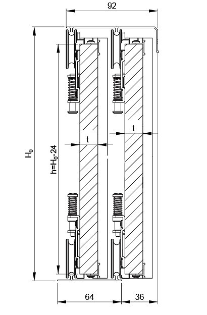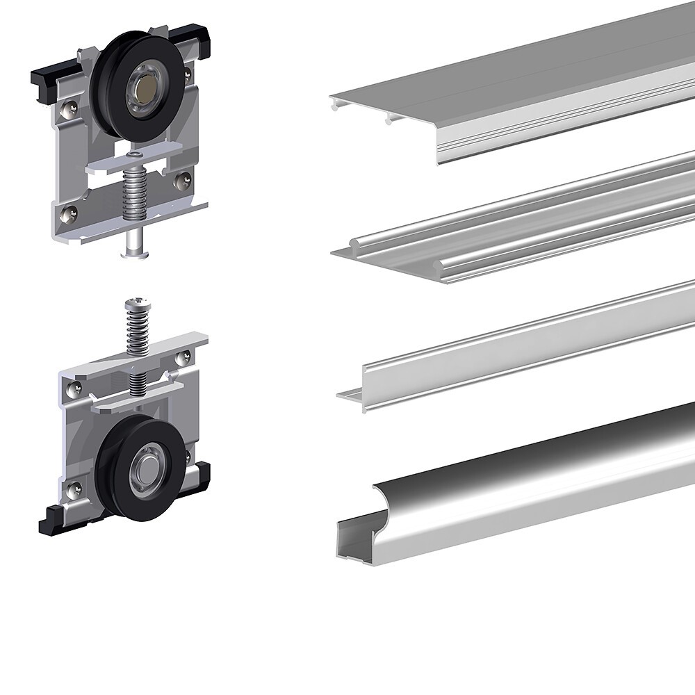 hauteur max de 2.7m. Epaisseur des panneaux 19mm mélaminé et grand choix de décor. Quincaillerie alu, roues à gorges très fluide en haut et en bas acceptant des portes jusqu’à 70kg.